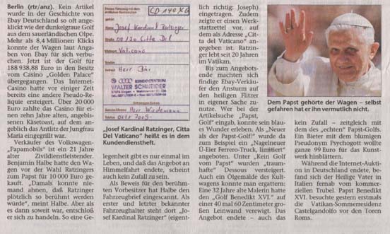 einen weiteren Bericht zur Versteigerung
