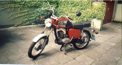 MZ 2 - MZ TS 150 rot, diese Maschine habe ich für wirklich kleines Geld im Internet ersteigert und im Sommer 2000 aus Berlin abgeholt wo ich unterwegs war um für einen Freund einen ersteigerten Trabi abzuholen. Also haben wir die rote MZ gleich mit auf den Anhänger geschnallt un mit nach Hannover genommen. Bis auf eine komplette Erneuerung der Zündanlage hatte ich bisher keine Schwierigkeiten mit ihr ! Sie hat ein Saisonkennzeichen "04-10" ! Durch den Erwerb von MZ - Nr.3 wird sie im nächsten Frühjahr wohl in den Verkauf gehen !