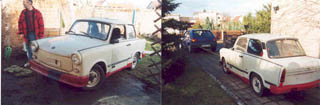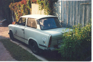 - sept. 1995 nach 3Jahren in unserem Besitz, immer noch fast original, "extras" - seitl. Zierleisten, Antenne aufs Dach, Griff vom Wartburg an Kofferklappe, riesige Diddl-Mäuse Aufkleber (der Hingucker auf der Autobahn, wenn uns Papis mit Kindern überholten..), gesamtes Fahrzeug in schwarz/papyrus... optik für's kleine Geld