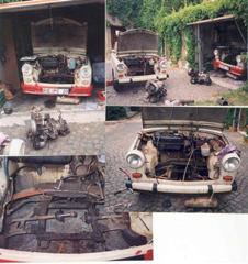 - Rechts sind Fotos, diesmal vom Motorwechsel im Mai' 98 (unser 3. insgesamt...), langsam haben wir Routine... der unverbastelteTrabi Nr. 2. (Bj 87, Laufleistung 26000km) spendete: "Herz + Niere", sprich Motor und Getriebeeinheit und später noch so manches